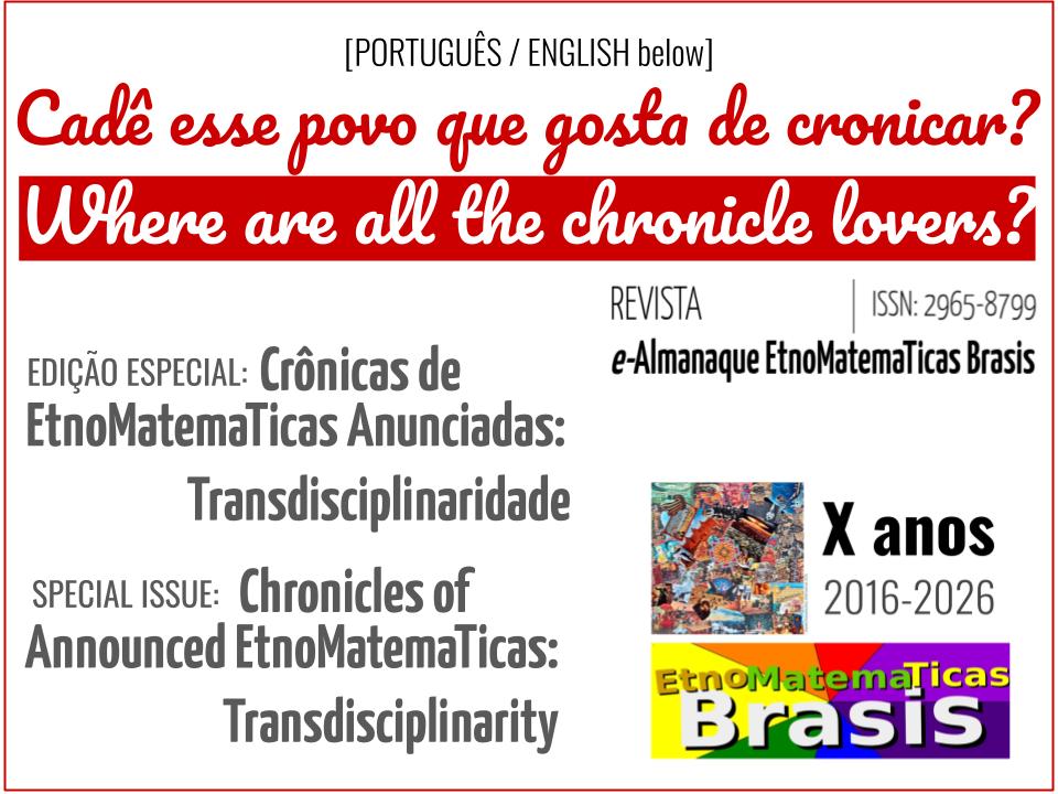 [PORTUGUÊS / ENGLISH] Revista e-Alm. EMT-BR – «Crônicas de EtnoMatemaTicas Anunciadas: Transdisciplinaridade» (chamada para submissões) *** e-Alm. EMT-BR Journal – “Chronicles of