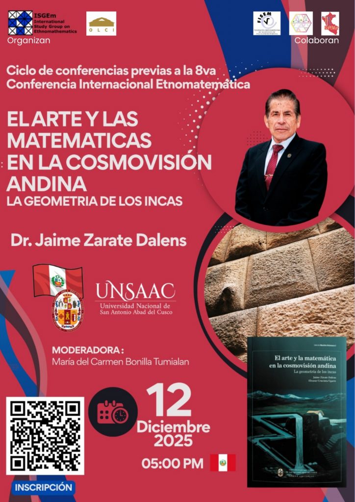 El arte y la matemática en la cosmovisión andina – la geometría de los incas nos invita a descubrir la profunda relación entre el arte, matemáticas y la cosmovisión en la civilización inca. Lejos de ser simples expresiones técnicas, la arquitectura, la cerámica, la textilería y la ingeniería de los antiguos andinos revelan una comprensión geométrica del mundo integrada a su espiritualidad y organización social, así como mostrar, cómo los incas aplicaron principios matemáticos en armonía con su entorno, desarrollando un conocimiento ancestral que hoy nos desafía a repensar los límites entre la ciencia, arte y cultura. La etnomatemática andina se considera como una estrategia pedagógica que permite rescatar el pasado prehispánico, revalorando los conocimientos y tecnologías ancestrales de la cultura inca; en este sentido, es nuestro deber impulsar en los procesos enseñanza aprendizaje de las matemáticas que no solo intervienen factores de tipo cognitivo, psicológico o metodológico sino que también existen aspectos sociales y culturales que influyen en la actitud del interés y el desempeño de los estudiantes de todos los niveles y modalidades.